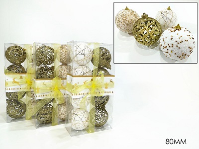 BOLAS NATAL DOURADAS E BRANCAS 8UNDS 8CM 12284