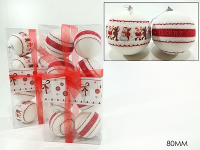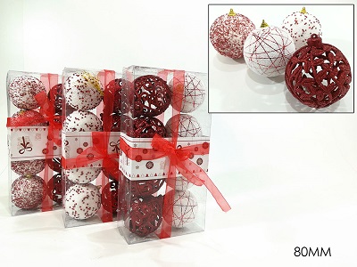 BOLAS NATAL BORDEAUX E BRANCAS 8UNDS 8CM 12303