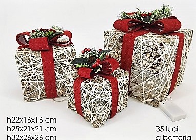 CAIXAS EMBRULHO C/LAÇO E LUZES 22/25/32CM 12510