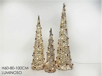 ARVORES NATAL CONE C/LUZES 60/80/100CM 22616