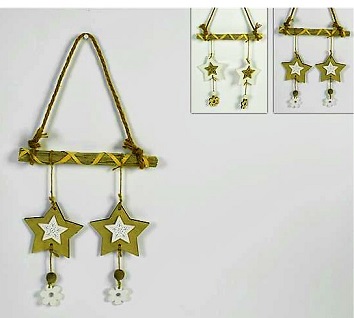 ADORNO MADEIRA PENDURAR 2 ESTRELAS E FLORES 77779