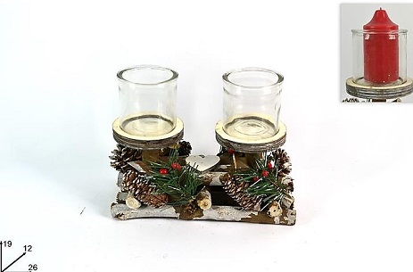 CASTIÇAL MADEIRA C/COPOS 2 VELAS 82919
