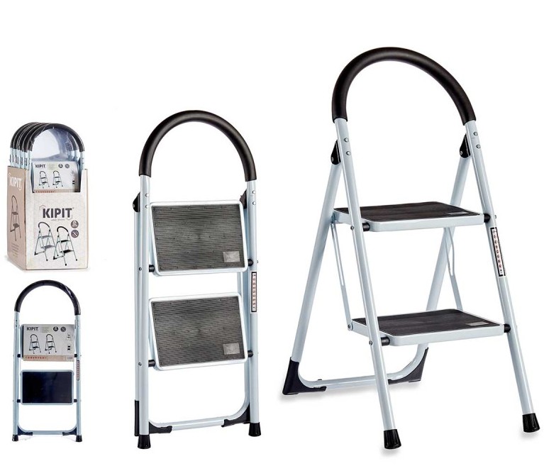 ESCADOTE METAL BRANCO 2 DEGRAUS PRETOS 24458