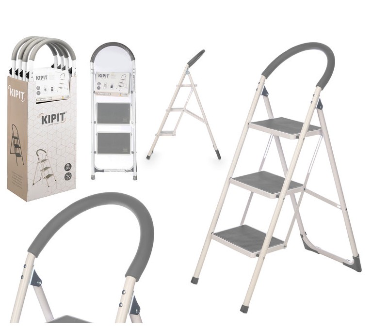 ESCADOTE METAL 3 DEGRAUS 170X39X66.5CM CINZA BRANCO 10109