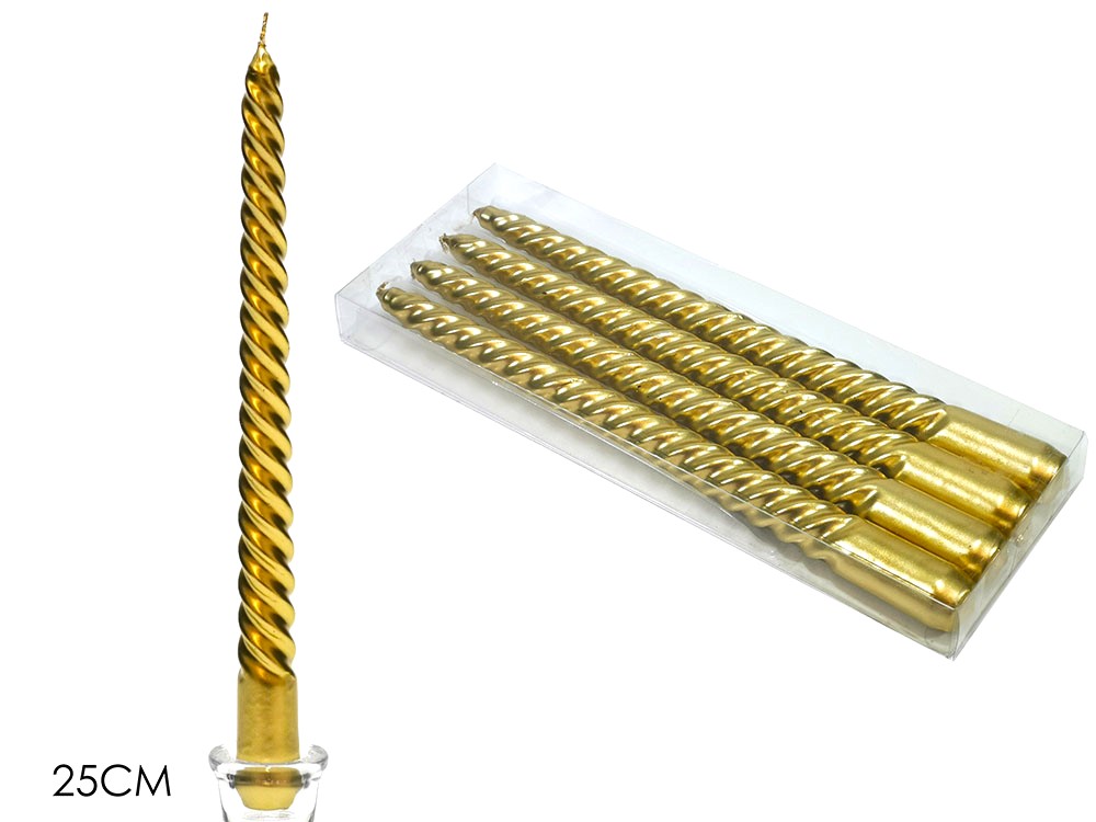 VELAS TORCIDAS 4 UNDS 25CM DOURADAS 411662/59916