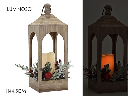 LANTERNA MADEIRA COM LUZ 11.5X26CM 439710/36468