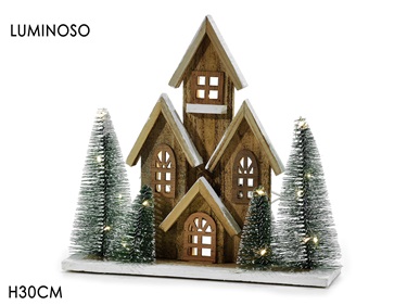 CASA MADEIRA C/ARVORES E LUZ 30CM 441970/51849