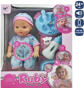 BONECO BEBE COM ACESSORIOS 12 SONS 30CM 03447