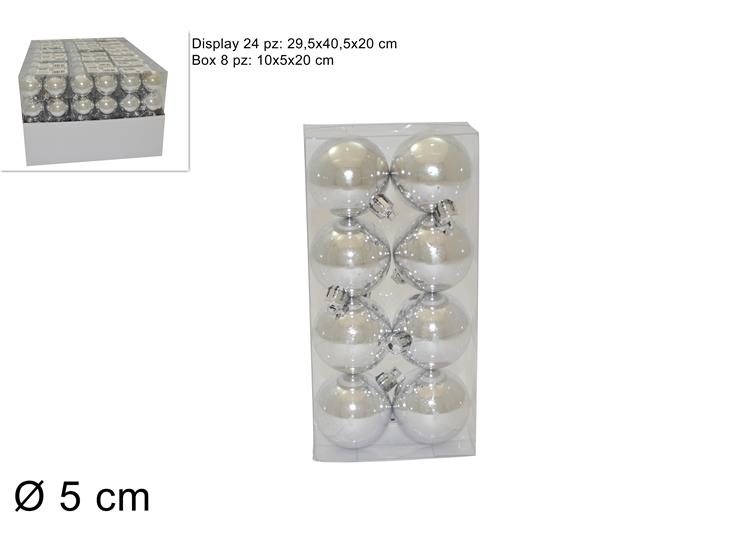 BOLAS NATAL 8 UNDS 5CM PRATEADAS 46500
