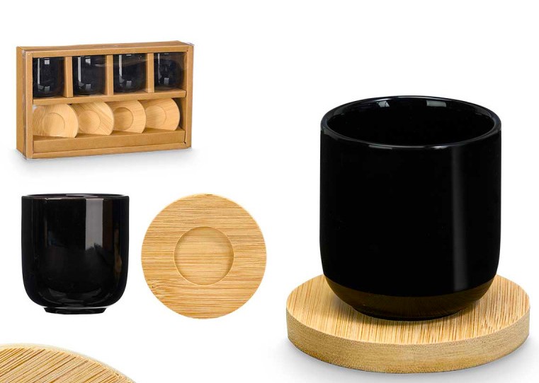 COPOS LOUÇA CAFE C/BASE BAMBU 4 UNDS PRETO 60497