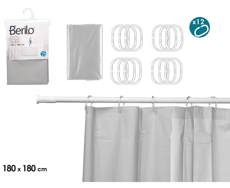 CORTINA BANHEIRA POLIESTER 12 ARG 180X180CM CINZA 89381