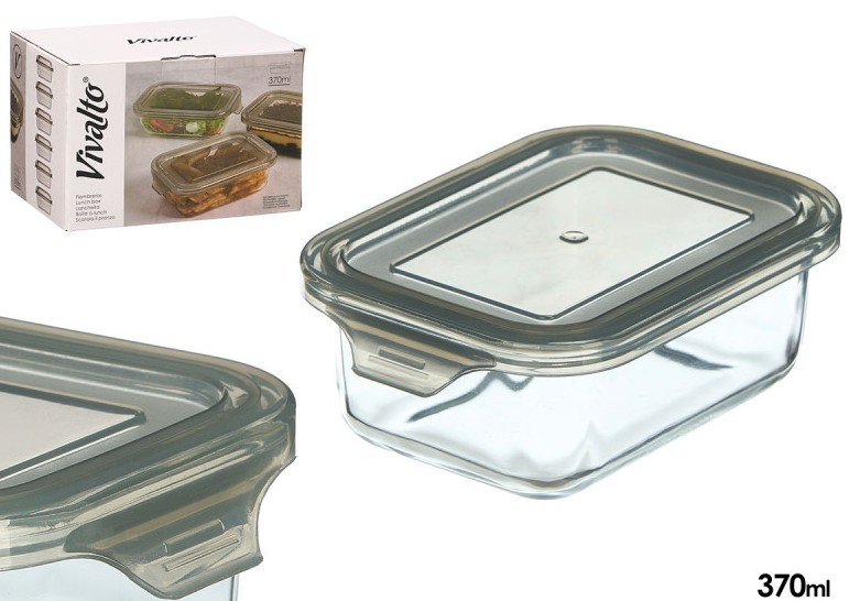 CAIXA VIDRO HERMETICA RETANGULAR 370ML 12709