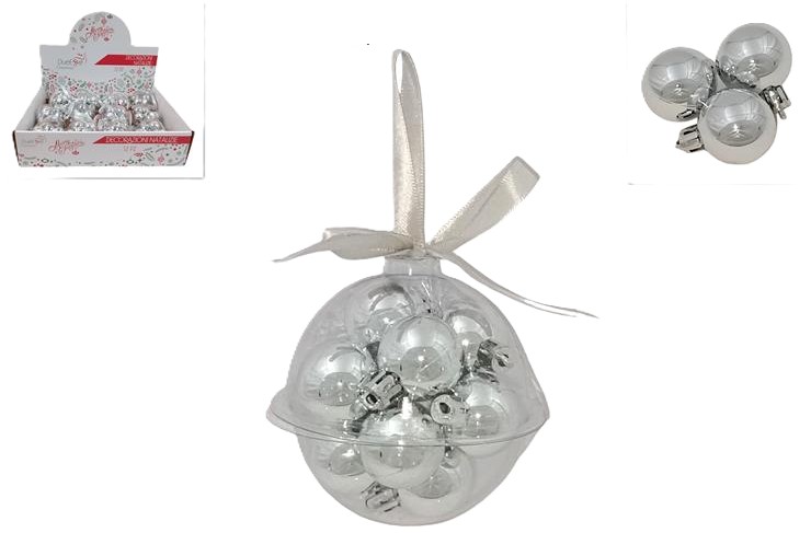 BOLAS NATAL 12 UNDS 3CM PRATEADAS 24405