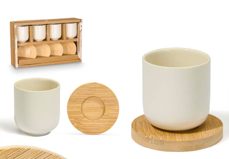 COPOS LOUÇA CAFE C/BASE BAMBU 4 UNDS BRANCO 60491