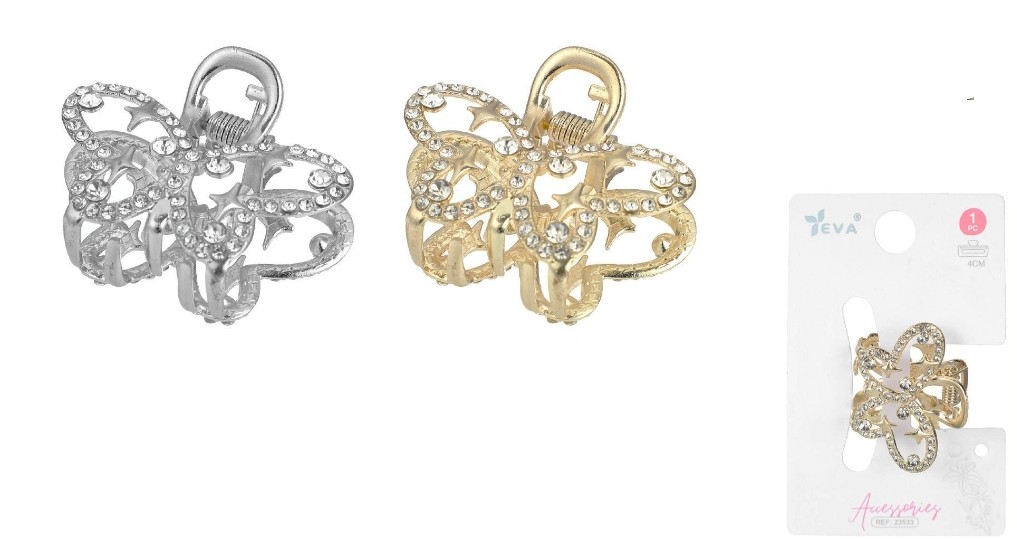 MOLA CABELO 4CM BORBOLETA DOURADA/PRATEADA 23525
