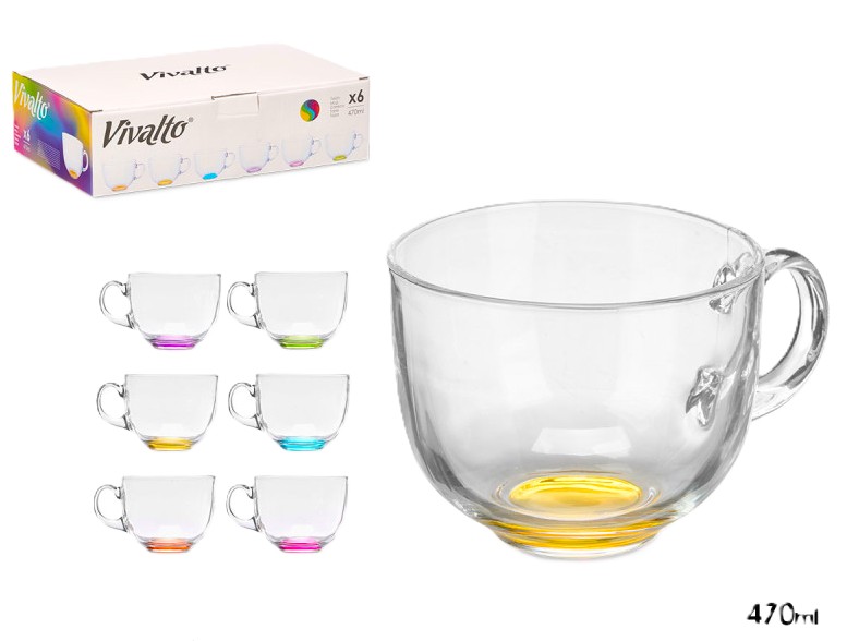 CANECAS VIDRO JUMBO FUNDO COR 6 UNDS 47CL 10463