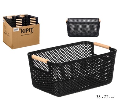 CESTO PLASTICO MULTIUSOS ASAS BAMBU 36X22X16CM PRETO 12866