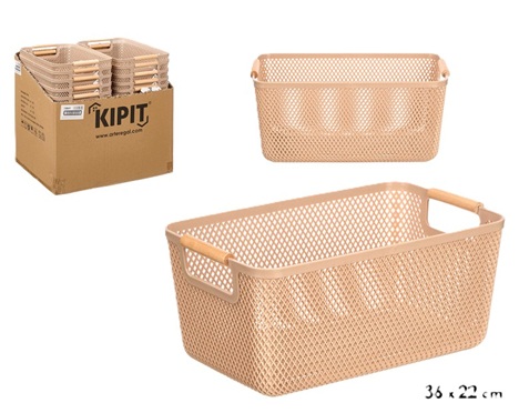 CESTO PLASTICO MULTIUSOS ASAS BAMBU 27.5X18X12CM BEGE 12867