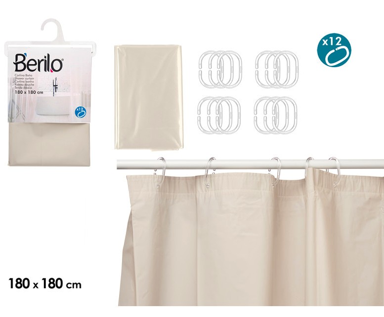 CORTINA BANHEIRA 12 ARG 180X180CM BEGE 89377