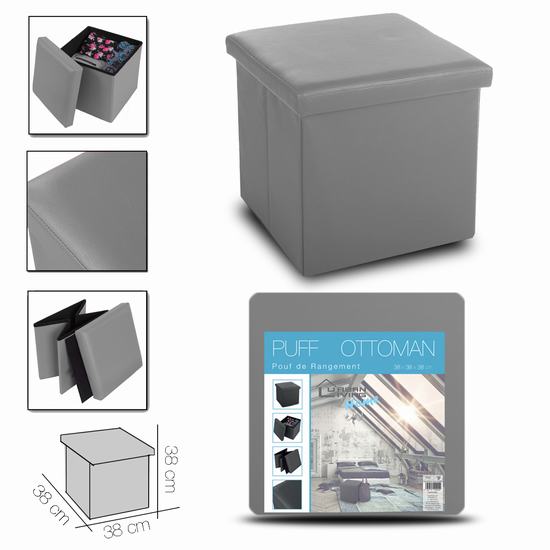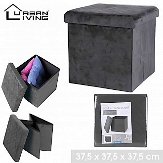 PUFF DOBRAVEL VELUDO 38X38X38CM CINZA ESC 23197