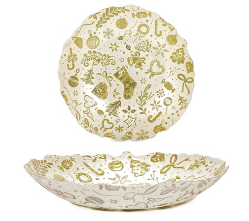 PRATO VIDRO 32CM DOURADO C/BRANCO 577507/33183