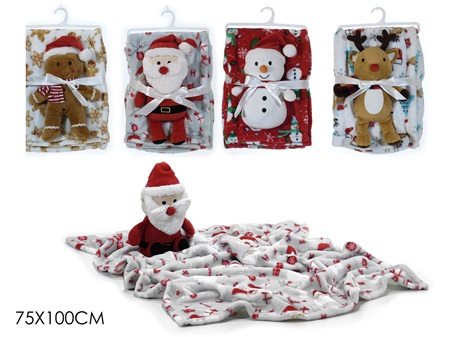 MANTA POLAR 75X100CM C/PELUCHE NATAL SORT 596010/47379