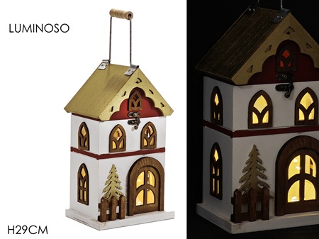 CASA MADEIRA COM LUZ 29CM BRANCO C/BORDEAUX 440215/00561