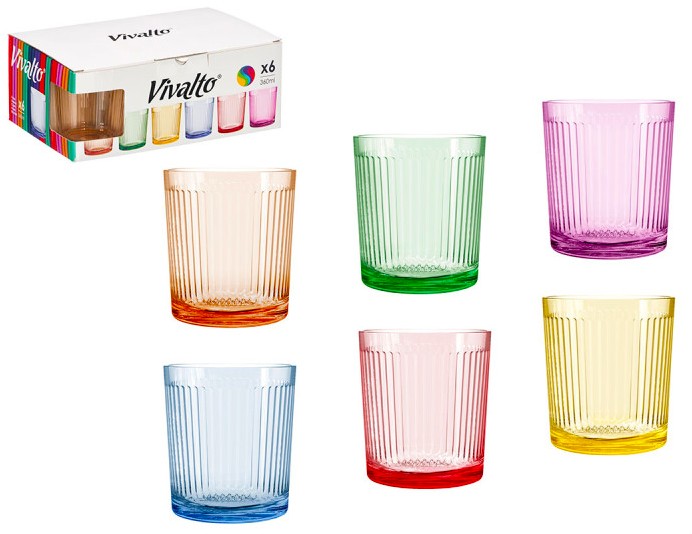 COPOS VIDRO CORES 6 UNDS 36CL VIVALTO RISCAS 12184