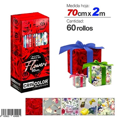 PAPEL EMBRULHO 200X70CM FLOWERS 43409