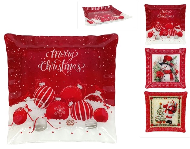 PRATO VIDRO 30X30CM DECORAÇAO NATAL SORT 35149