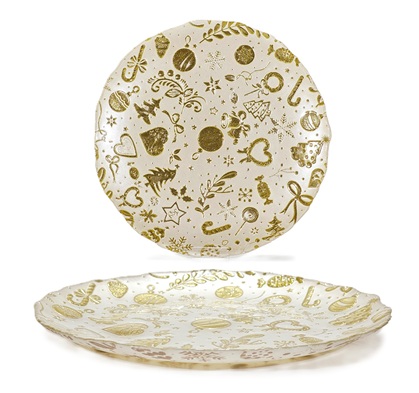 PRATO VIDRO 32CM BRANCO C/DOURADO 577543/33801