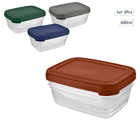 CAIXAS PLASTICO HERMETICAS 3 UNDS 600ML SORT 09616