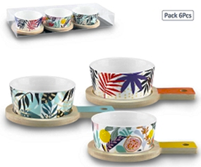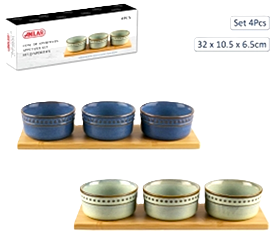 TAÇAS CERAMINA 3 UNDS 10X5CM C/BASE BAMBU SORT 30903